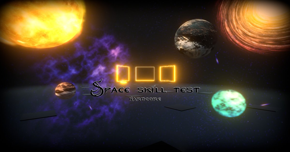 SPACE SKILLS TEST is a hardcore 3D game for 1 player. The game is designed to test your parkour skills. This challenge features beautiful space graphics as well as interesting and popular types of parkour, including rock climbing. The game has 3 regular levels, 2 temporary levels, as well as cards with special tests. Test your skills, have fun!*WASD* = move*space* = jump*shift* = run*e* = action